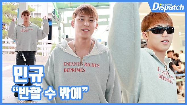 이날 민규는 그레이 후드티와 와이드 블랙 진으로 힙한 공항패션을 선보였다.