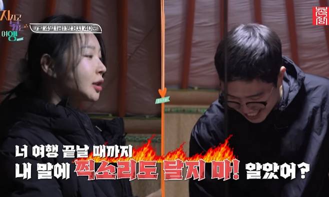 4일 방송되는 ENA·SBS Plus '지지고 볶는 여행' 17회에서는 '나는 솔로' 24기 옥순-영식이 몽골의 야생 게르에서 극한의 대치를 벌인다.