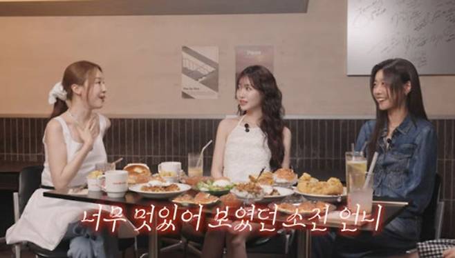 유라는 소진에 대해 “소진 언니는 너무 어른 같아서 쫄았는데 생각해보니 그때 언니도 스물다섯 아가였던 거다”라고 떠올렸다. 민아는 소진에 대해 “옷을 진짜 힙하게 입었다. 언니가 너무 멋있어서 내 로망이었다”라고 밝혔다. 이어 민아의 첫인상에 대해 혜리는 “엄청 아기 같았다”라고 말했고 멤버들 역시 “페이스가 아직도 애기다”라고 덧붙였다.