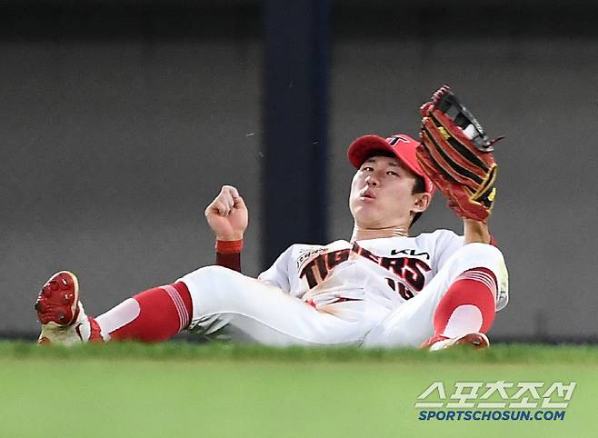 4일 광주 기아 챔피언스필드에서 열린 롯데-KIA전. 5회초 무사 김민성의 빗맞은 타구를 우익수 최원준이 잡고 있다. 광주=정재근 기자 cjg@sportschosun.com/2025.7.4/