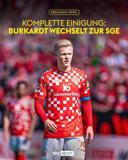독일 분데스리가 소식에 정통한 플로리안 플레텐베르크 기자는 4일(이하 한국시간) "속보. 부르카르트의 프랑크푸르트 이적이 완료됐다. 프랑크푸르트는 FSV 마인츠 05와 합의에 도달했으며, 부르카르트는 2030년까지 계약하는 조건으로 프랑크푸르트에 합류한다"라고 보도했다.