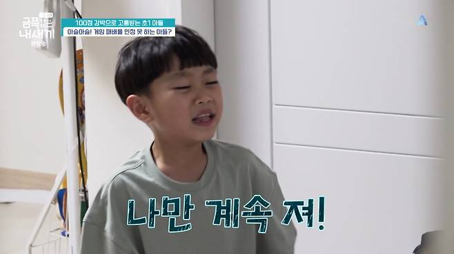 연속해서 지게 되자 금쪽이는 "나만 다 졌다"라며 엄마에게 팔을 휘둘렀고 결국 울읔을 터뜨렸다. 할머니가 "다음에 이기면 되지 않냐"고 말리자 금쪽이는 "아무나 점수 따면 안된다. 나 혼자 점수 따야 된다"고 화를 냈다.