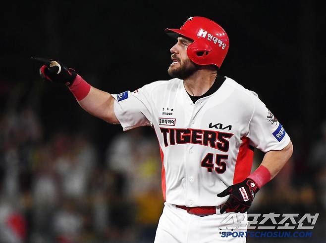 4일 광주 기아 챔피언스필드에서 열린 롯데-KIA전. 8회말 2사 1루 위즈덤이 투런포를 친 후 환호하고 있다. 광주=정재근 기자 cjg@sportschosun.com/2025.7.4/