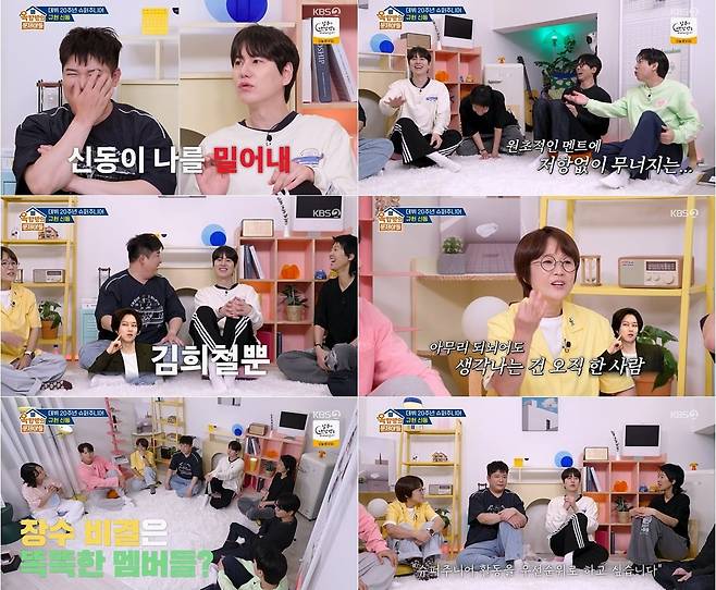 두 사람은 20주년 앨범 준비 비하인드도 솔직하게 공개했다. 신동은 “이번에는 속 썩이는 멤버가 없어서 재미가 없었다. 예전엔 김희철이 그랬는데, 이제는 누구보다 열심히 하니까 이상하다”고 농담 섞인 폭로를 해 웃음을 자아냈다. 또 어린 후배 아이돌들과 음악방송에서 마주치는 게 부담스럽다고 밝혔는데, 규현은 “후배들이 인사할까 봐 피해 다닌다”고 말해 폭소를 유발했다. 더불어 신동은 해체 없이 20주년을 지내온 비결에 대해 "멤버들 모두 '슈주'를 그만두면 팬덤이 나뉜다는 걸 아는 것 같다"고 밝히며, 20년간 차근차근 쌓아 올린 연륜과 내공을 뽐냈다.