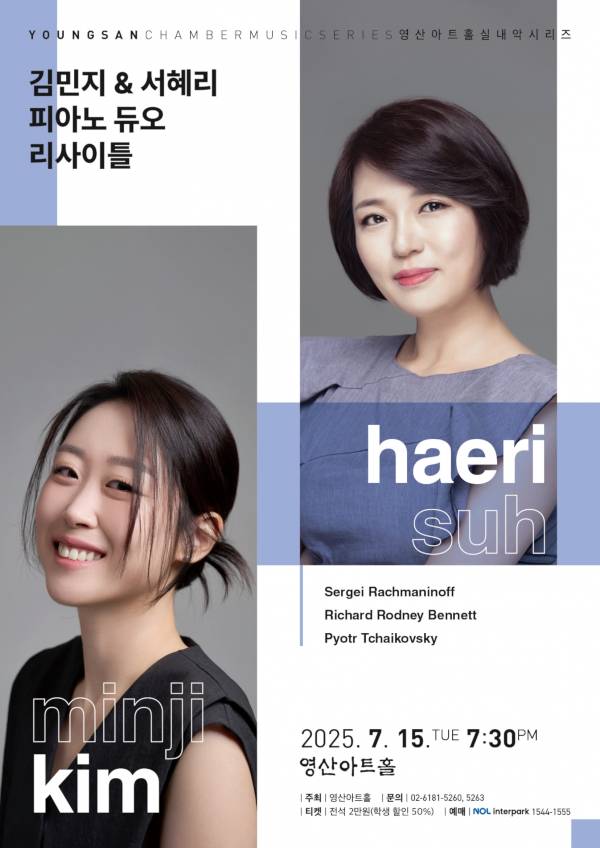 피아니스트 김민지와 서혜리가 오는 15일 서울 영등포구 영산아트홀에서 듀오 리사이틀(포스터)을 연다.