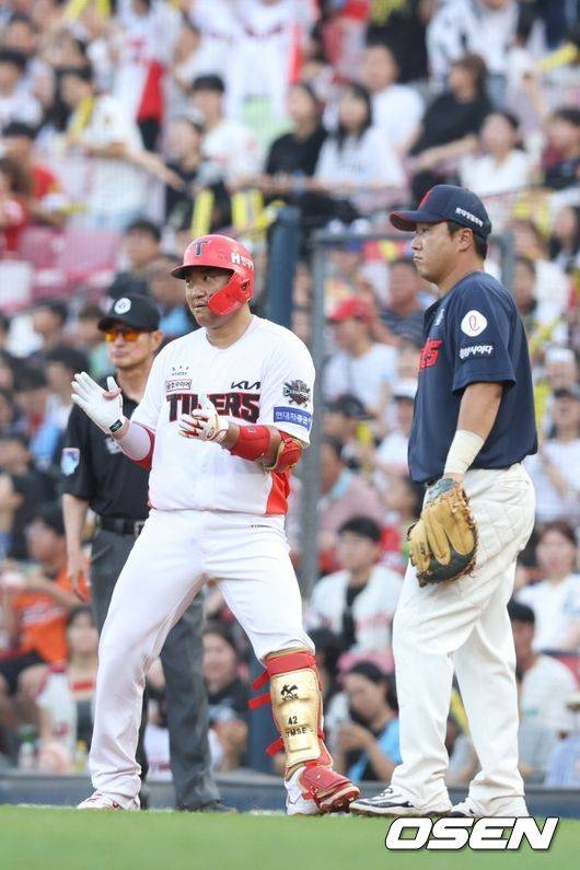이 감독은 대타 타이밍이었지만 그대로 김태군을 밀어부쳤다.