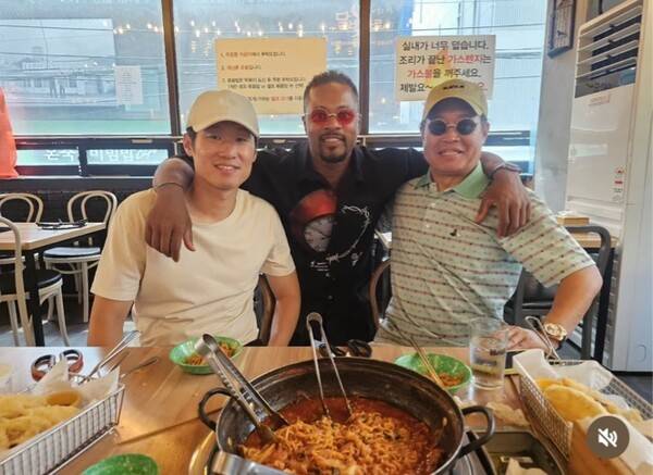 에브라는 4일(한국시간) 자신의 사회관계망서비스(SNS)를 통해 '절친' 박지성과 박지성의 아버지 박성종 씨와 떡볶이를 먹는 사진을 게재했다.