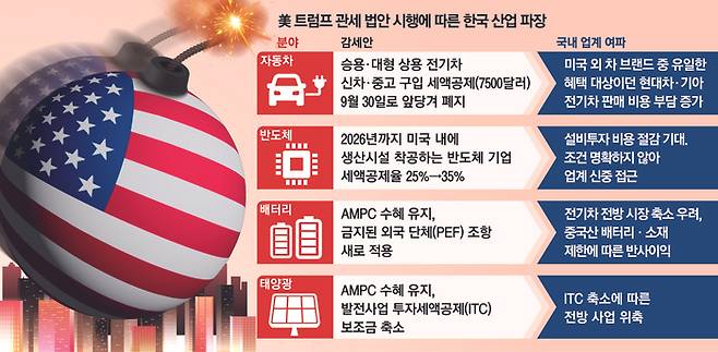 배터리 기업들은 전기차 시장 축소를 이번 감세안의 가장 큰 리스크로 지목한다. 다만 업계 관계자는 “중국산 배터리에 대한 고율 관세 부과에 더해 중국계 배터리 기업들이 미국 내에서 세액공제를 받는 길이 사실상 막힌 셈”이라며 “한국 기업의 북미 내 경쟁력이 상대적으로 부각될 수 있다”고 말했다.