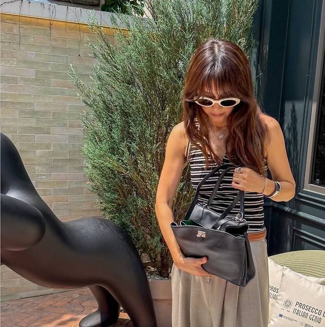 최근 공개된 사진에서 채정안은 블랙&화이트 스트라이프 민소매 탑에 루즈핏 베이지 버뮤다 팬츠를 매치해 여유롭고 트렌디한 실루엣을 완성했다.
