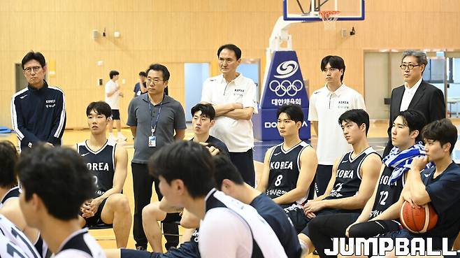 대한민국농구협회 관계자는 "30분 정도로 짧게 부탁했다. 성인 대표팀이랑 유니버시아드 대표팀이 동시에 이렇게 모이는 경우가 흔치 않다. 모인 김에 다 같이 숙지하고 가면 좋을 것 같아 이런 자리를 마련했다"고 설명했다.
