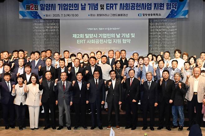 밀양상공회의소(회장 주보원)는 지난 3일 호텔아리나 경산홀에서 ‘제2회 밀양시 기업인의 날’ 행사를 성황리에 개최했다.