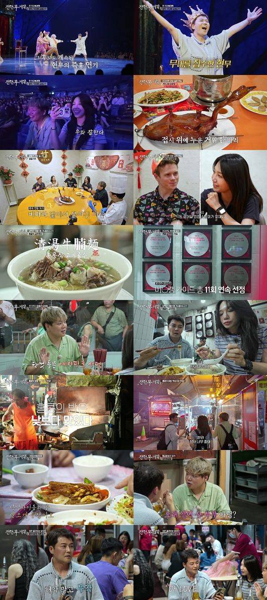 이날 ‘홍콩 원정대’ 전현무, 곽튜브, 정은지는 “우리가 드디어 ‘태양의 서커스’를 본다”며 발걸음을 재촉했다. 직후, 백스테이지에서 자신들을 초대해준 배우들을 만난 세 사람은 ‘한국 간식’을 선물해 화기애애한 분위기를 형성했다. 뒤이어 세 사람은 서커스를 관람했는데, 공연 중 배우들이 갑자기 관객석으로 내려와 전현무를 무대 위로 이끄는 돌발 상황이 벌어졌다. 전현무는 갑작스런 공연 참여에도 강도 높은 ‘광대 춤’을 선보였다. ‘한국 연예대상’의 명예를 건 그의 ‘웃음 투혼’에 서커스 관람객들도 포복절도하며 박수를 보냈다.