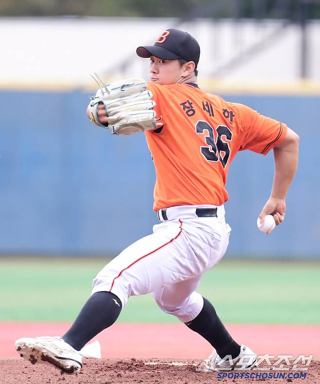 5일 서울 목동구장에서 열린 제80회 청룡기 고교야구선수권 대회 및 주말리그 왕중왕전 북일고-인천고 경기. 투구하는 북일고 장세한. 목동=송정헌 기자songs@sportschosun.com/2025.07.05/