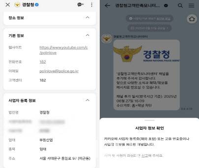 "경찰청 카톡, 부동산 임대업으로 돼 있는데 진짜 경찰인가요?"