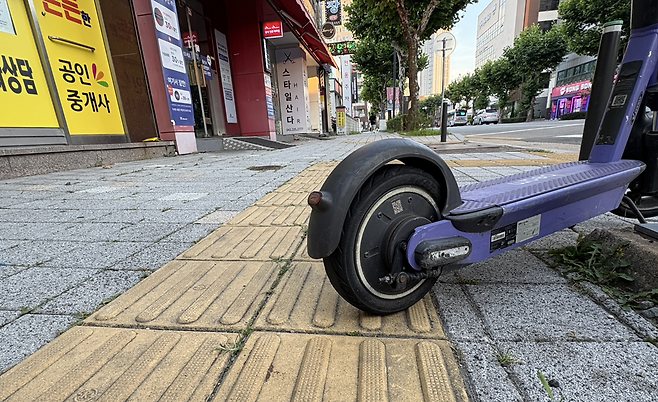 전에도 노점상이며 광고판 등이 종종 점자블록을 막았지만, 킥보드는 전과 다른 위협입니다.