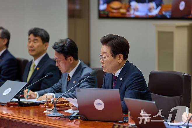 (서울=뉴스1) 허경 기자 = 이재명 대통령이 5일 서울 용산 대통령실 청사에서 열린 국무회의에서 발언하고 있다. (대통령실 제공. 재판매 및 DB 금지) 2025.7.5/뉴스1