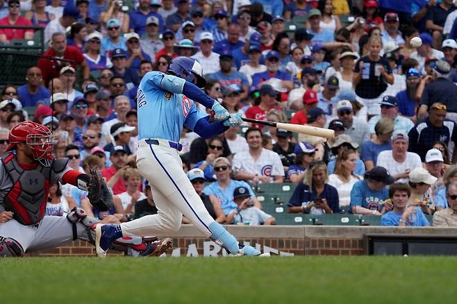 크레이그 카운셀 감독이 이끄는 컵스는 5일(한국시간) 미국 일리노이주 시카고의 리글리필드에서 열린 2025 미국 메이저리그(MLB) 세인트루이스 카디널스와의 홈경기에서 11-3으로 승리하면서 4연승을 질주했다. 시즌 성적은 53승35패(0.602)가 됐다.