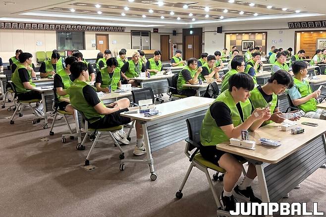 발대식을 마치고 곧바로 현장으로 투입됐다. 무덥고 습한 날씨로 절로 인상이 찌푸려지지만, 선수단은 밝은 에너지를 앞세우며 적극적으로 각자의 장점(힘과 높이)를 뽐냈다.