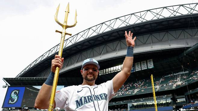 ▲ 구단을 상징하는 삼지창을 든 시애틀 포수 칼 랄리
