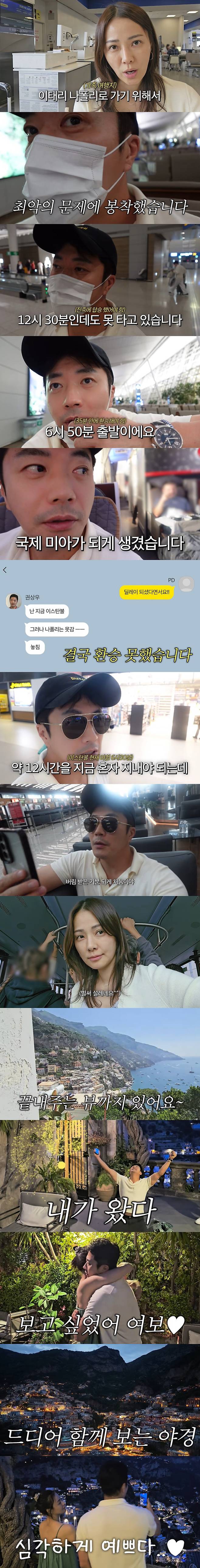 알고보니 권상우가 예약한 비행기가 비행기 이상으로 1시간 20분이 늦춰지면서 2시간 경유 시간이 촉박해진 것. 권상우는 "지연되면 이스탄불에 아침 6시 15분에 도착한다. 나폴리로 가는 비행기가 6시 50분 출발이다"며 "말이 안 된다. 못 탈 것 같다. 첫 스탭부터 꼬였다"며 한 숨을 내쉬었다.
