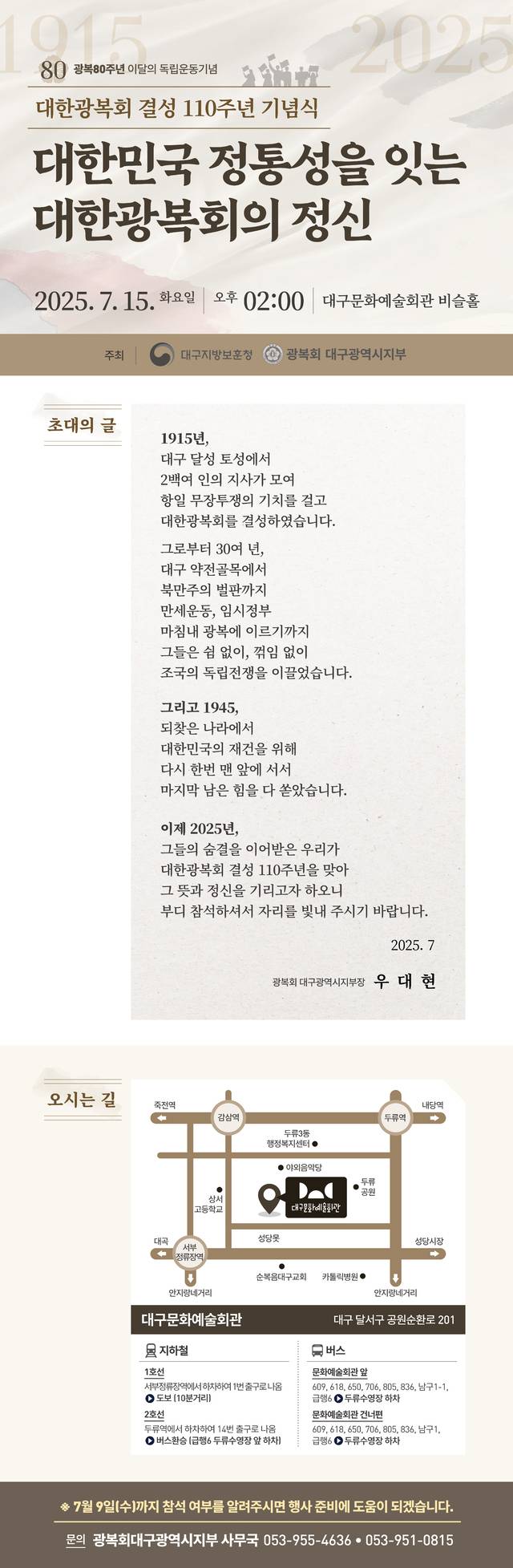 이제 2025년, 대한광복회 창설 110주년이자 광복 80주년.