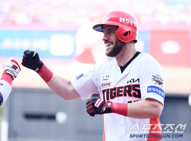 5일 광주 기아 챔피언스필드에서 열린 롯데-KIA전. 1회말 1사 위즈덤이 솔로포를 친 후 환호하고 있다. 광주=정재근 기자 cjg@sportschosun.com/2025.7.5/