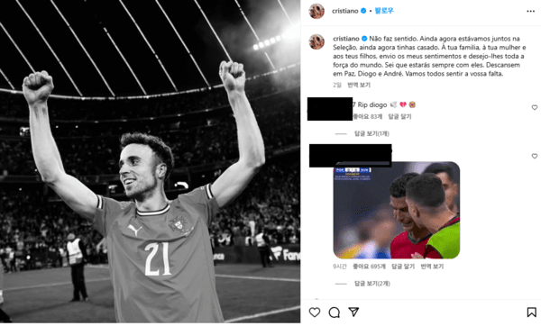 [SPORTALKOREA] 김경태 기자= 포르투갈 대표팀 주장 크리스티아누 호날두가 동료 디오구 조타의 장례식에 모습을 드러내지 않아 비난의 여론이 들끓고 있다. 일각에서는 그가 휴가를 보내고 있다는 제보까지 이어지고 있어, 논란이 일고 있다.