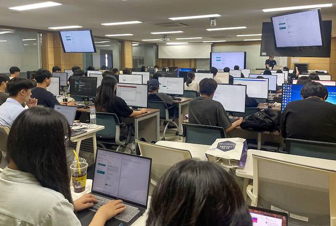 참가 학생들은 △슬랙, Canva, ChatGPT 등 AI 협업 도구 활용 △클라우드 개념 이해와 파티락(Partyrock) 기반 기획 프로젝트 △AWS Partyrock을 활용한 디지털헬스케어 서비스 개발 등 실무 중심 교육을 경험했다.