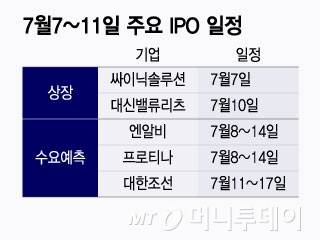 다음주 (7일~11일) 상장하는 기업은 싸이닉솔루션과 대신밸류리츠 2곳이다.