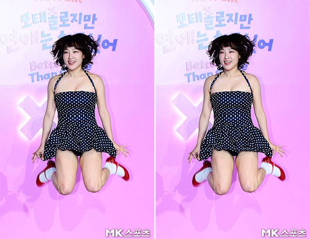 방송인 이은지가 제작발표회 무대에서 아찔하고 과감한 점프로 제작발표회 무대를 찢었습니다.