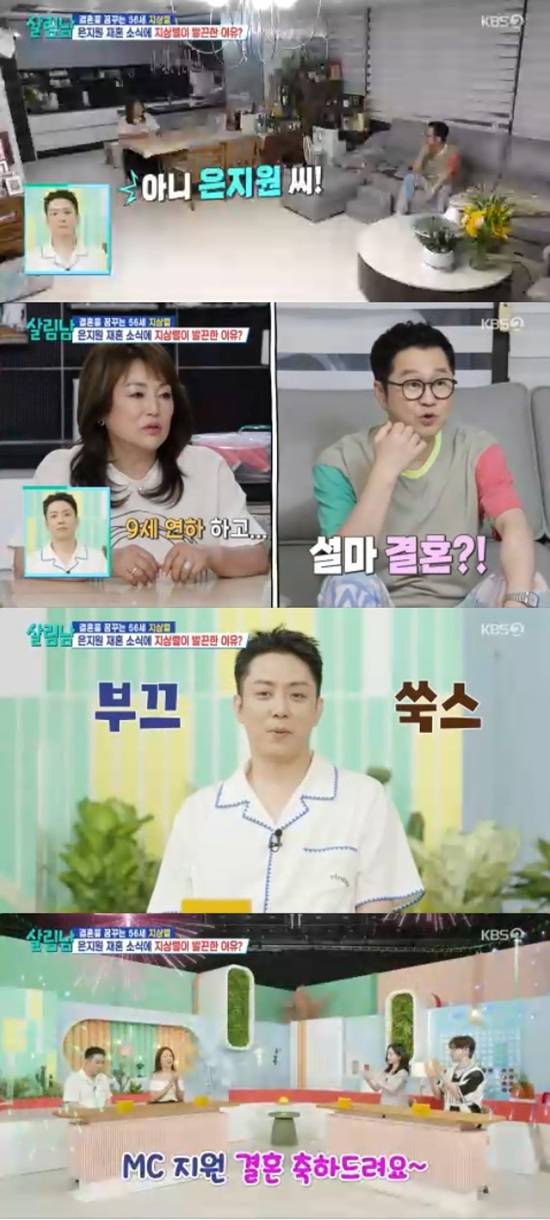 이날 지상렬 형수는 "올해도 절반이 지나갔는데 1살은 더 먹고 은지원 씨 9살 연하하고 어제 기사 났다. 이번에 오픈했더라"라고 은지원의 재혼 소식을 언급했다.
