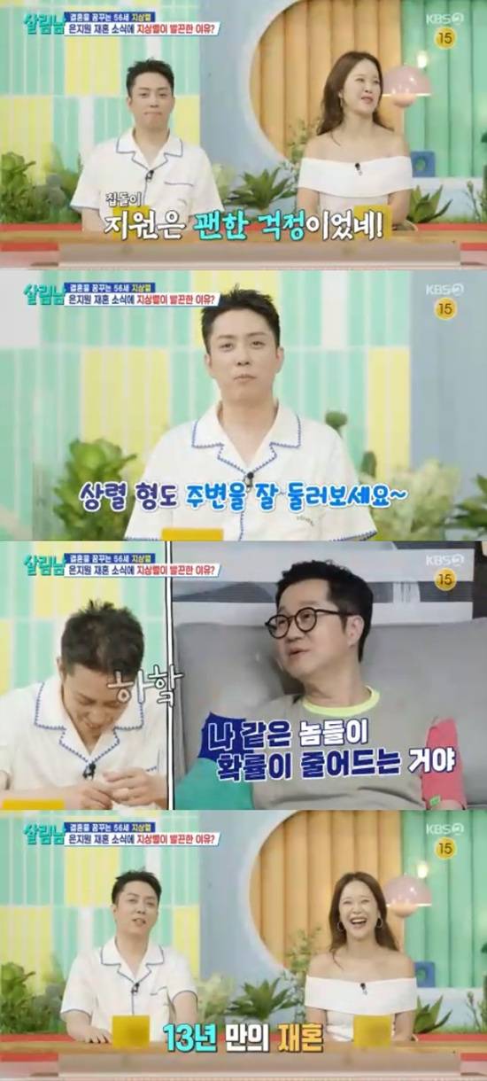 5일 방송된 KBS 2TV '살림하는 남자들 시즌2'에서는 은지원이 13년만의 재혼 발표 후 처음으로 재혼 언급을 하는 모습이 전파를 탔다.