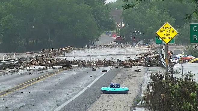 현지시각 4일, 미국 텍사스주 중부에 300mm가량의 폭우가 쏟아져 과달루페 강이 범람했습니다.