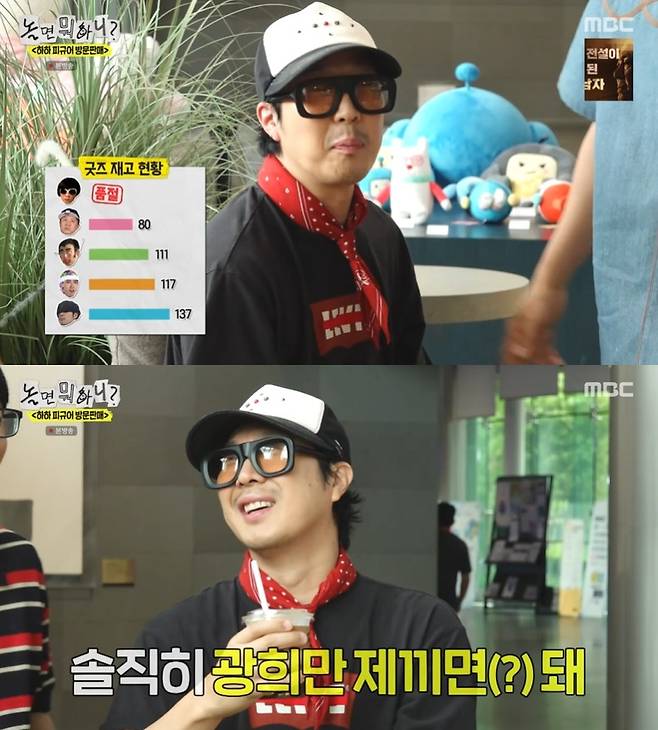 해당 피규어의 재고 개수는 하하 137개, 광희 117개, 박명수 110개 정준하 80개, 유재석은 품절로 하하가 꼴찌를 기록했다.