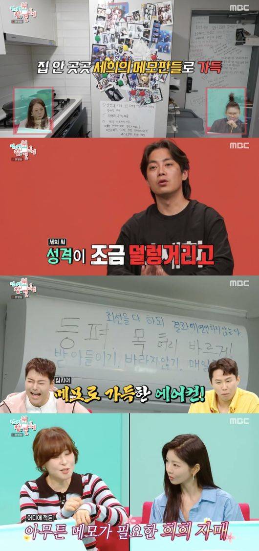 이날 이세희는 집을 최초 공개했지만, 집안 곳곳 물건으로 가득 차 있어 눈길을 끌었다. 특히 그는 메모로 가득한 냉장고, 현관문, 거실탁자, 에어컨까지 선보여 놀라움을 더했다.