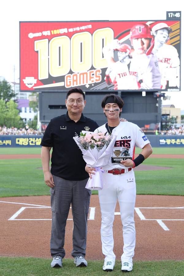KIA 타이거즈 박찬호가 KBO 리그 역대 185번째로 1,000경기 출장 기록을 달성해 구단과 KBO의 축하를 받았다.