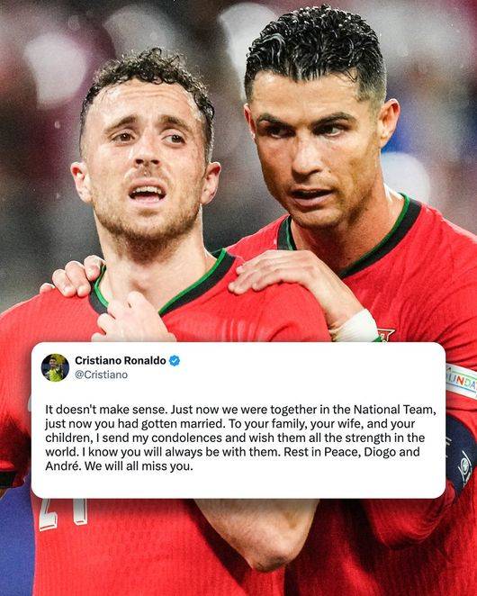 또한 매체는 "호날두는 즉시 공개적으로 애도를 표했다. 그는 비극이 잊히더라도 적절한 방식을 통해 유족들을 위해 세심한 주의를 기울이고, 필요한 모든 지원을 제공할 것임을 밝혔다"라며 "이번 경우에도 호날두는 불과 몇 주 전 네이션스리그 우승을 함께했던 포르투갈 국가대표팀 동료이자 친구였던 조타를 잃었기에 충격이 더욱 컸다. 그는 소셜 미디어에 글을 올리며 유족의 절망을 공유했다"라고 덧붙였다.