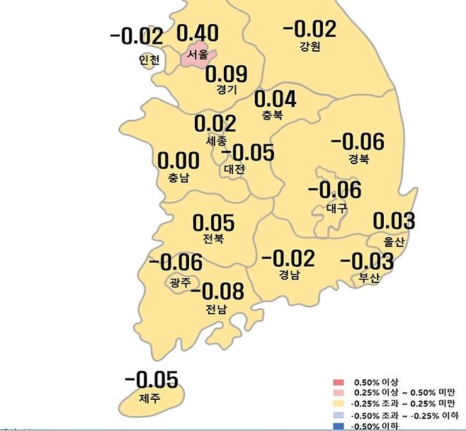 [아파트 매매가격 동향 (한국부동산원 제공=연합뉴스)]