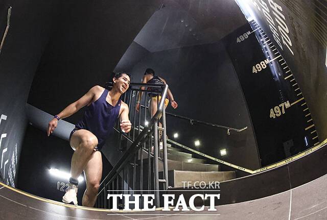 올해 참가자는 석촌호수 동호를 두 바퀴, 1.5km를 헤엄치고 롯데월드타워 1층부터 123층까지 2917개 계단을 오른다.