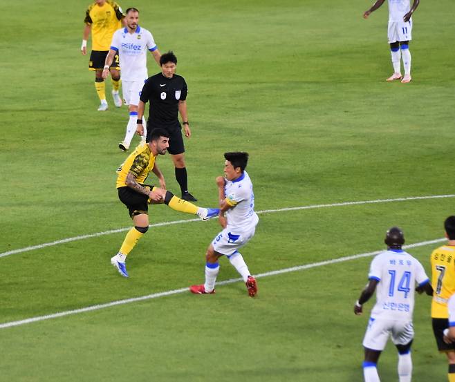 반면에 후반 추가 시간(90+1분)에 결정적인 동점골 기회를 잡은 인천 유나이티드는 새로 데려온 미드필더 김건웅이 회심의 오른발 발리슛을 날렸지만 크로스바를 때리고 나오는 바람에 뒤로 벌러덩 자빠졌다.