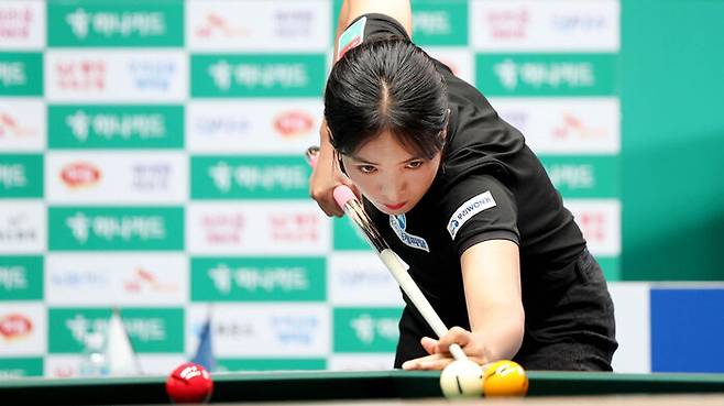 지난해 3차 투어부터 7연속 우승을 거두고 이번 시즌 개막전도 제패하며 8연속 우승했던 김가영은 공교롭게도 자신의 소속 팀인 하나카드가 후원하는 대회에서 연속 우승 행진에 제동이 걸렸습니다.