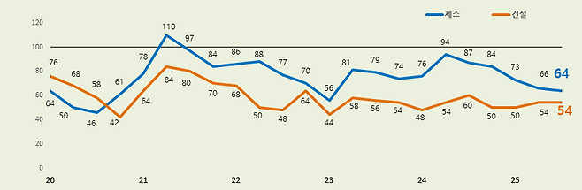 건설업 BSI, 전 분기보다 전반적으로 상승···기준치에는 못 미쳐