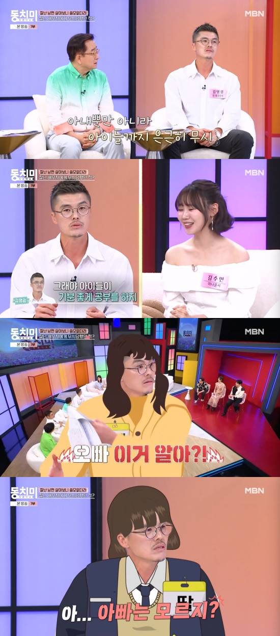 김영광은 "아이들이 태어나고 숙제라는 문제를 맞닥뜨렸다. 와이프가 애들 숙제를 채점해 주는데 애들이 틀릴 수도 있지 않나. 좋게 말하면 좋은데 '이걸 못해? 이걸 못하는 거야?'라고 한다. 제가 '여보, 애들에게 긍정적으로 말해줘야지'라고 하면 '오빠 이거 알아?'라고 한다. 마음은 아픈데 정말 모르겠다"고 털어놔 웃음을 자아냈다.