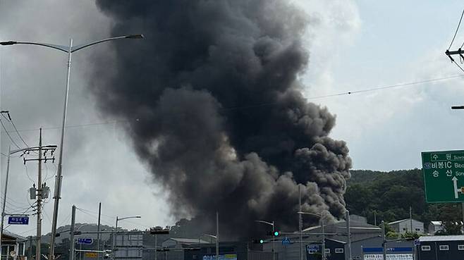 화성시는 오전 9시 36분 재난 문자를 보내 "서신면 상안리 193-25 공장 화재로 연기가 다량 발생 중이니 주민들은 창문을 닫는 등 안전에 유의해달라"고 안내했습니다.