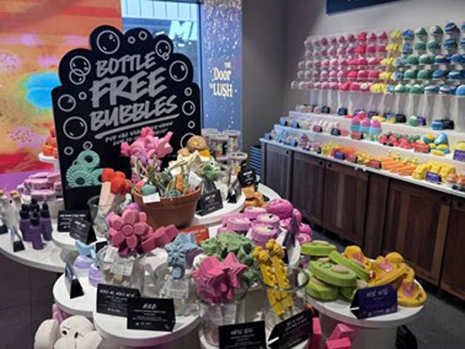 | ▲ 포장 없이 날 것 그대로 진열된 러쉬의 제품들 |