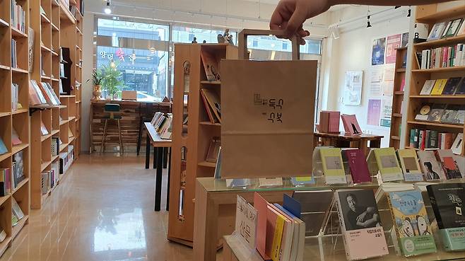 | ▲ 책방수북의 종이 가방 책방 대표님이 아까워 하는 종이 가방 |