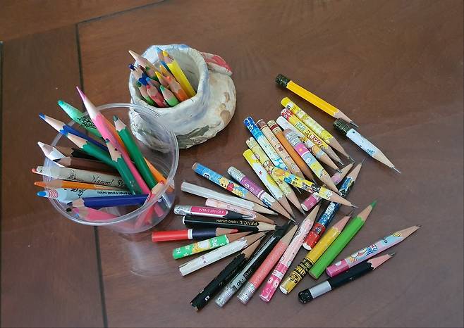 | ▲ 몽당연필 모아둔 몽당연필 |