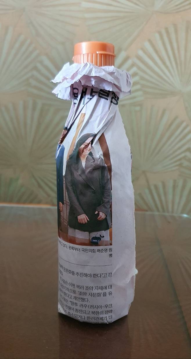 | ▲ 신문으로 싼 참기름병 오래된 방앗간에서 갓 짠 참기름을 병에 담아 신문지로 휘리릭 |