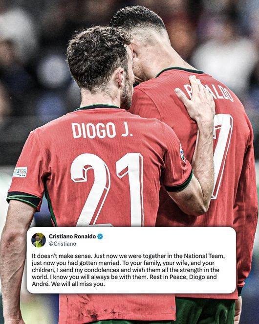 또한 매체는 "호날두는 즉시 공개적으로 애도를 표했다. 그는 비극이 잊히더라도 적절한 방식을 통해 유족들을 위해 세심한 주의를 기울이고, 필요한 모든 지원을 제공할 것임을 밝혔다"라며 "이번 경우에도 호날두는 불과 몇 주 전 네이션스리그 우승을 함께했던 포르투갈 국가대표팀 동료이자 친구였던 조타를 잃었기에 충격이 더욱 컸다. 그는 소셜 미디어에 글을 올리며 유족의 절망을 공유했다"라고 덧붙였다.