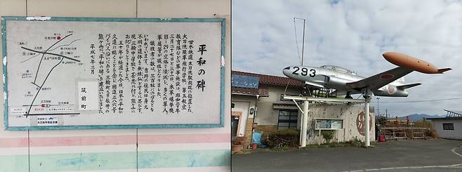 다치아라이역에서 내리면 두 가지가 눈에 띈다. 먼저는 '평화의 비'에 적힌 문구다. 내용을 살펴보니 '아마기철도 다치아라이역 주변에 위치한 육군비행학교, 제5항공교육대 등의 군사시설이 쇼와 20년(1945년) 3월 27일과 31일, 미군폭격기 B-29의 폭격으로 궤멸돼 많은 군인과 군속이 희생됐다'고 적혀 있다. 그것이 주요 메시지다.